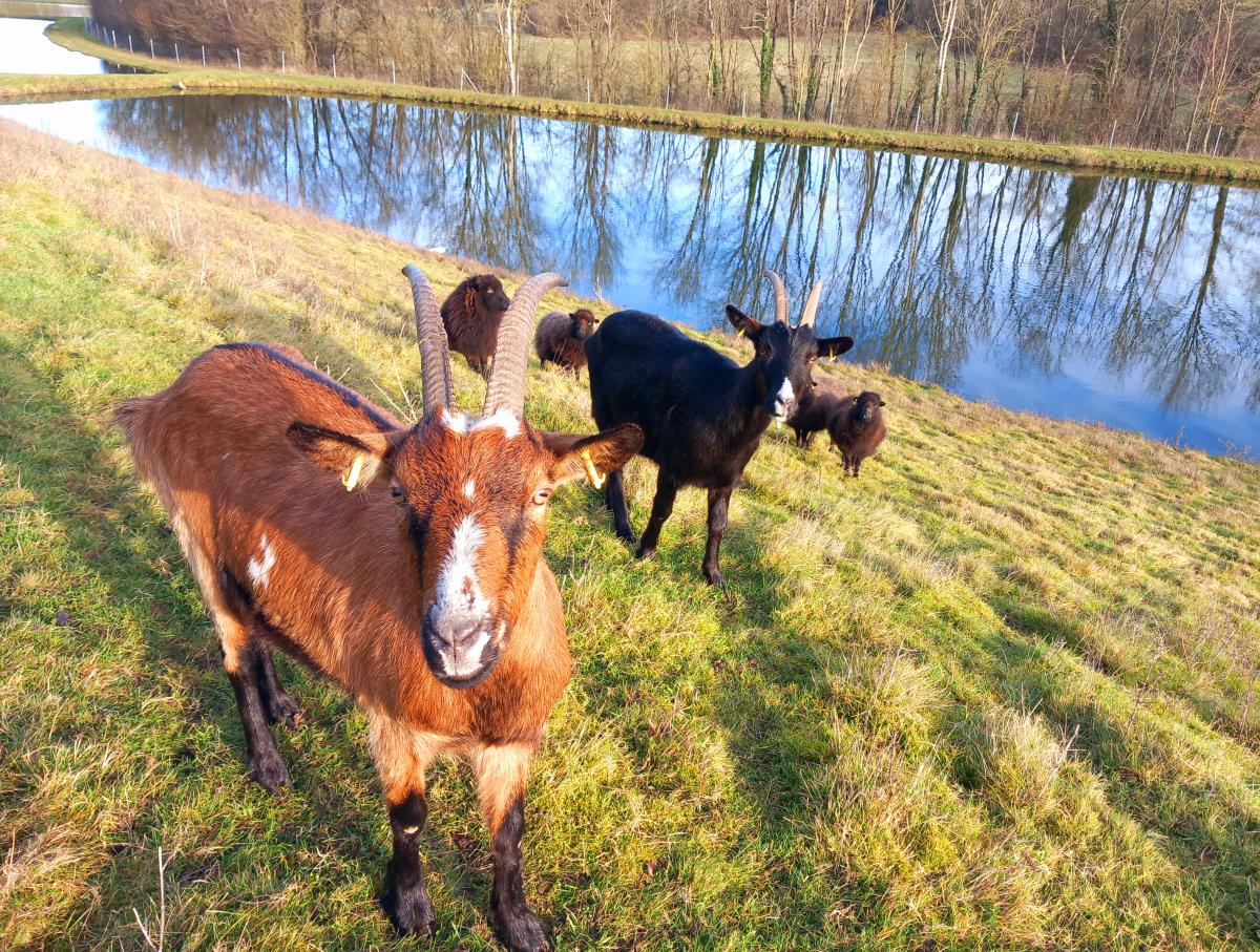Sur ce site, nous avons placé 14 moutons mâles avec deux boucs de race alpines. Les visiteurs du parc peuvent avoir la chance de les observer !